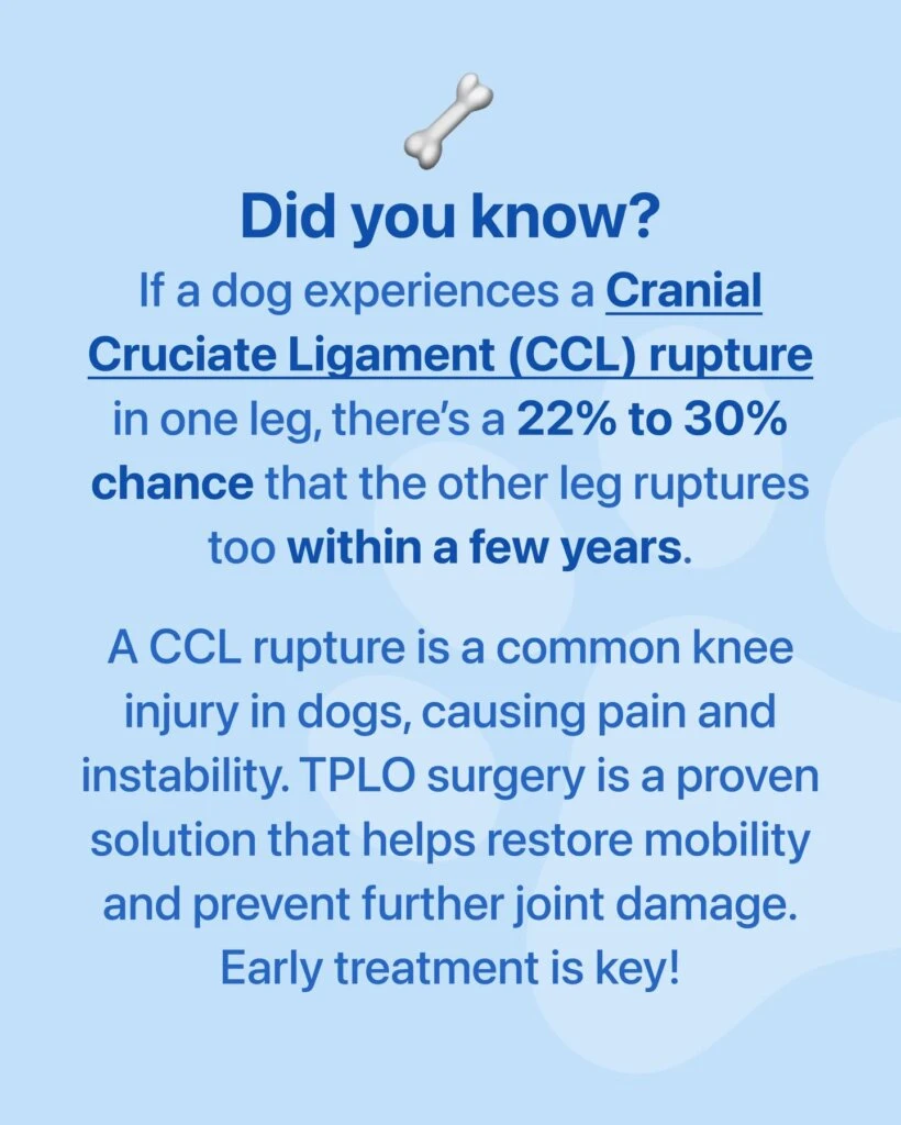 After a jump gone wrong, 6-year-old Mochi the Maltipoo began limping on his back left leg and came to us for care. Mochi’s owner first took him to an emergency hospital, where a torn ligament was suspected, and then came to our team for a second opinion. After a thorough orthopedic exam and radiographs, we confirmed that Mochi needed TPLO surgery as soon as possible.